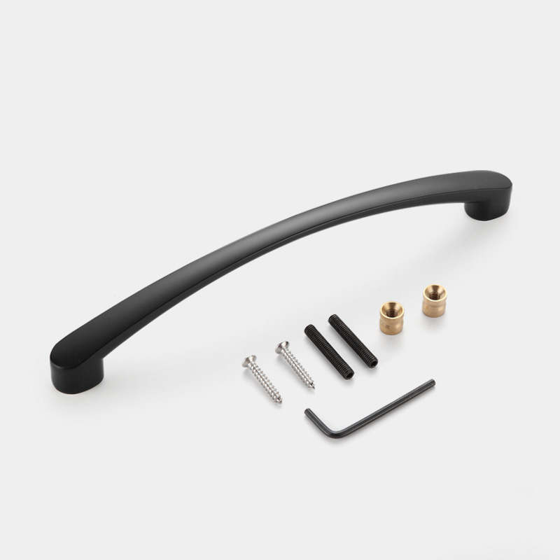 Slim curved sliding door handle with special relative screw fittings can be single side or both sides installation; Mostly in Brushed Nickel, Matt Black and Antique Brass finish;